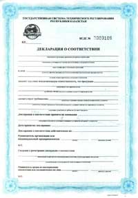 A Declaration of Conformity duly prepared and registered according to the rules of the State System of Technical Regulation for conformity confirmation is effective throughout the Republic of Kazakhstan on an equal basis with a Certificate of Conformity.